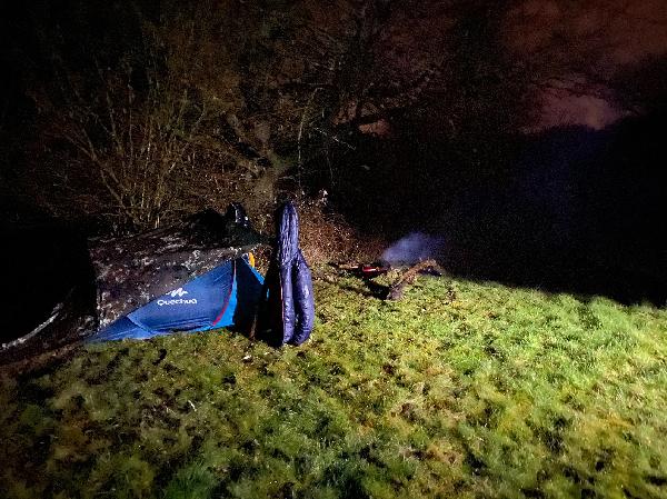 Um sich zu Verpflegen hatten die Beiden ein Grillfeuer vor ihrem Zelt entzündet.