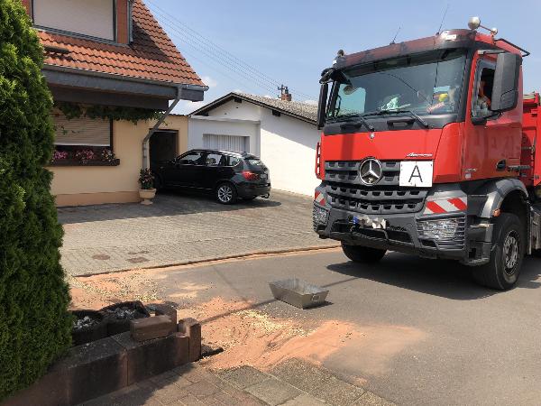 Der betroffene Laternenpfosten wurde mit einer Leine gesichert und der Energieversorger zur Einsatzstelle angefordert. Bevor der Lkw abgeschleppt werden konnte, mussten die mehr als 13 Tonnen Asphalt, die sich noch auf der Ladefläche befanden, umgeladen werden.