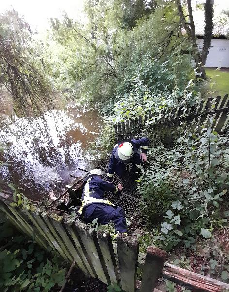 Zufälligerweise hielt der Löschbezirk gerade eine Übung im Feuerwehrgerätehaus ab, sodass sich eine Einsatzmannschaft umgehend auf den Weg zur Weiheranlage machen konnte.