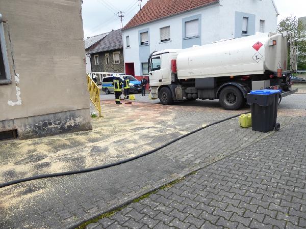 Als der Schaden bemerkt wurde waren bereits hunderte Liter Heizöl über die Einfahrt, den Gehweg bis über die Straßenrinne in die Kanalisation gelangt.