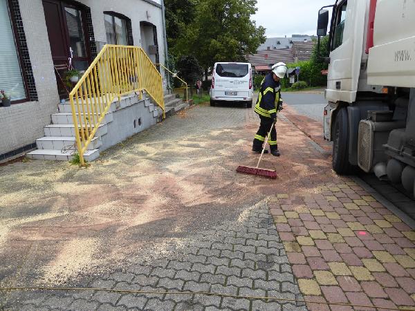 Während des Tankvorgangs kam es zu einem Defekt am Füllstutzen des Hauses, sodass das Heizöl nicht mehr in die Zuleitung der Heizöltanks lief sondern sich in der Einfahrt seinen Weg suchte.