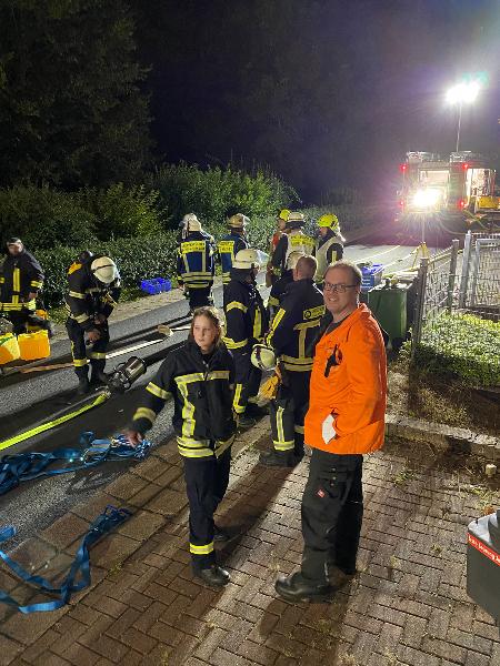 Der Einsatz für die rund 120 freiwilligen Einsatzkräfte der Feuerwehr unter der Leitung von Wehrführer Andreas Groß konnte nach rund 7 Stunden gegen 01:30 Uhr vor Ort beendet werden. Im Anschluss musste in den Feuerwehrgerätehäusern und Fachwerkstätten wieder Einsatzmaterial und Fahrzeuge auf Vordermann gebracht werden. Diese Arbeiten zogen sich noch bis tief in die Nacht.