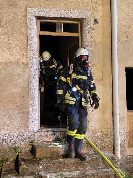 Die kurz nach dem Notruf eintreffenden Einsatzkräfte konnten einen Flammenschein hinter einem Fenster im Obergeschoss des Gebäudes bestätigen. Nachdem die Eingangstür gewaltsam geöffnet worden war, drang ein Trupp unter Atemschutz in das Gebäude vor und konnte den Brandherd schnell lokalisieren. Mit einem C-Rohr wurden brennende Kleiderreste abgelöscht und das Gebäude im Anschluss mit einem Überdrucklüfter belüftet.