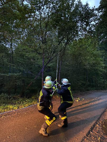 Gegen 14:07 Uhr wurde der Löschbezirk Bubach-Calmesweiler in die Henselbergstraße gerufen, weil ein Baum auf die Fahrbahn gefallen war und die Durchfahrt versperrte. Gegen 18:48 musste der Löschbezirk Habach in der Verlängerung der Straße „zu den Eichenstangen“ tätig werden. Auch dort drohte ein Baum auf die Fahrbahn zu stürzen.
