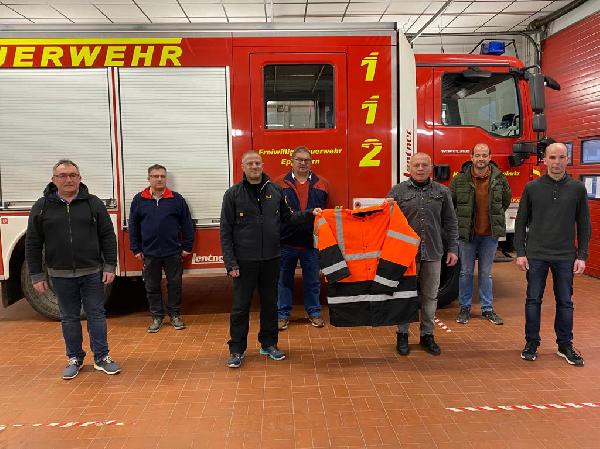 Der Vorsitzende des Förderkreises und gleichzeitig stellvertretende Löschbezirksführer Peter Blug sowie der stellvertretende Vorsitzende des Förderkreises, Horst Groß, konnten die Jacken im Gerätehaus des LBZ Bubach – Calmesweiler an den Löschbezirksführer Frank Bonner sowie den stellvertretenden Löschbezirksführer Manuel Braun übergeben, welche die Jacken an die Einsatzmannschaft weitergeben. Mit dabei waren Vorstandsmitglieder beider Institutionen.