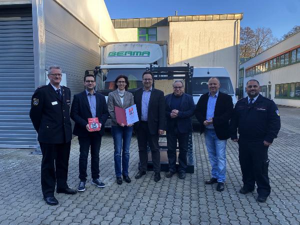 Bürgermeister Dr. Andreas Feld war stolz, als er von der Partnerschaft zwischen der Feuerwehr der Gemeinde und der Firma GERMA berichtete. So gab es auch in der Vergangenheit nicht nur materielle und finanzielle Unterstützung für die Feuerwehr. Er hob auch hervor, dass mehrere Mitarbeiter des Unternehmens aktive Feuerwehrmitglieder seien und für Einsätze ganz unbürokratisch freigestellt würden. "Es ist das erste Mal, dass wir so eine Auszeichnung in der Gemeinde verleihen, und deshalb ist es auch für die Feuerwehr etwas ganz besonderes", so der Bürgermeister.