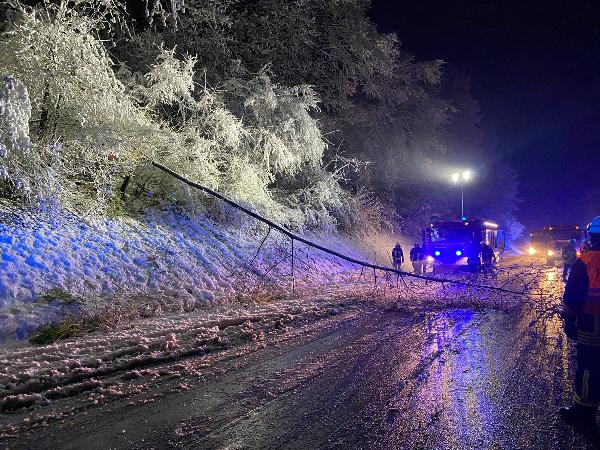 Auch auf der Autobahn A1 drohte in der Nacht ein schneebedeckter Baum auf die Fahrbahn zwischen den Anschlussstellen Eppelborn und Illingen zu stürzen. Die Löschbezirke Eppelborn, Bubach-Calmesweiler und Dirmingen mussten hier zuerst eine Vollsperrung der Richtungsfahrbahn Saarbrücken einrichten, bevor der Baum mit einer Kettensäge gefällt werden konnte. Die Beseitigung übernahm der Landesbetrieb für Straßenbau.