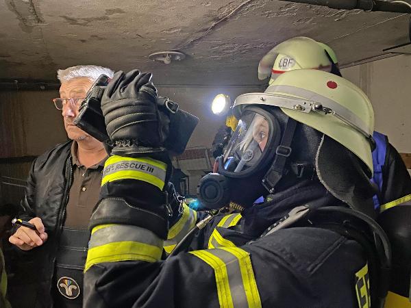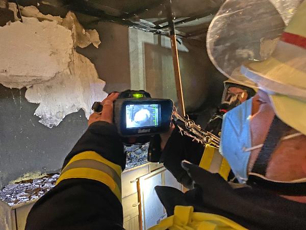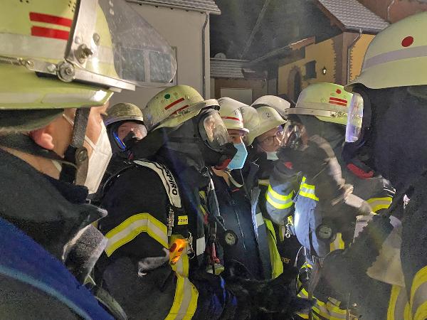 Parallel dazu startete der Innenangriff mit einem C-Rohr im Erdgeschoss. Unter Atemschutz musste das betroffene Zimmer ausgeräumt und das Brandgut vor dem Anwesen abgelöscht werden. Mehrfach wurde mit der Wärmebildkamera nach versteckten Glutnestern gesucht und nachgelöscht. Zur Kontrolle von Schornstein und Heizungsanlage wurde auch der Bezirksschornsteinfegermeister zur Einsatzstelle gerufen.