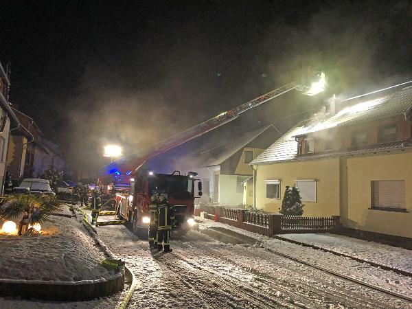 Beim Eintreffen der Einsatzkräfte ging man zuerst von einem Kaminbrand aus. Von der Straße aus war auch ein Flammenschlag und Funkenflug aus dem Schornstein zu erkennen. Doch bei der Kontrolle des völlig verqualmten Erdgeschosses konnte ein offener Brand in einem der Zimmer festgestellt werden. Über die Drehleiter der Feuerwehr Lebach, die vom Einsatzleiter nachgefordert worden war, wurde der Schornstein von oben geöffnet und kontrolliert.