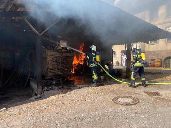 Mit 2 C-Rohren und unter Atemschutzeinsatz konnte der Brand schnell gelöscht werden. Ein Übergreifen der Flammen auf benachbarte Gebäudeteil konnte durch den schnellen Einsatz verhindert werden. Ein Feuerwehrmann erlitt bei dem Einsatz eine leichte Rauchgasvergiftung und musste zur weiteren Behandlung in ein Krankenhaus gebracht werden.