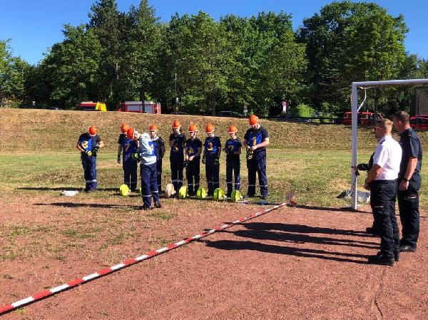 Zwei Monate lang hatten die Jugendfeuerwehrgruppe aus Bubach, Dirmingen und Wiesbach mit viel Ausdauer und Fleiß auf dieses Ziel hingearbeitet. Jeder Übungstag brachte ein weiteres Stück voran, bis alle erforderlichen Kommandos klar und deutlich kamen, die Schläuche akkurat lagen und das Auftreten der Gruppe sicher und geordnet erschien.