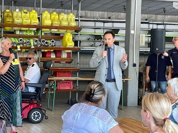 Bürgermeister Andreas Feld dankte der neuen Integrationsbeauftragten Sigrid Schmitt und ihrem gesamten Team für die geleistete, ehrenamtliche Arbeit. Sein Dank ging auch an Thomas Bost und seine Mitstreitern die sich ebenfalls außergewöhnlich in der Flüchtlingshilfe einsetzen. Für Bost gab es aus den Händen der Feuerwehr einen Scheck zur Unterstützung seiner Arbeit. Ein großes Dankeschön an die Feuerwehr, die sich viel Mühe zur Organisation des Tages gegeben hat.