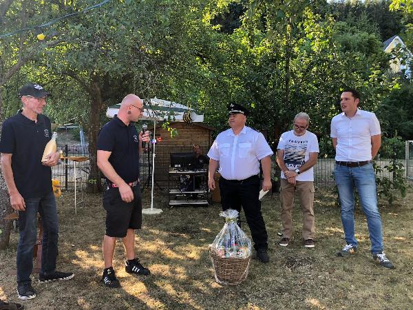 Letzter Redner, war Zugführer David Saupe vom Löschzug 2 aus Finsterwalde-Nehesdorf. Er freute sich über die Einladung und die Freundschaft, die beide Löschbezirke verbindet. Zusammen mit seinem Stellvertreter, Marcel Kramp, überreichte er einen Präsentkorb.
