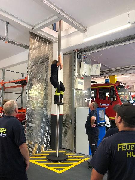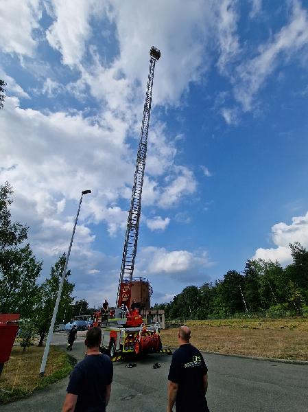 Zum Abschluss gab es eine Führung durch das stetig wachsende Gerätehaus der Werkfeuerwehr bei der auch die Besonderheiten einer Werkfeuerwehr im Vergleich zu einer kommunalen Feuerwehr deutlich wurde, gerade in Bezug auf Sonderlöschmittel. Wer mochte, konnte noch mit der Drehleiter hoch hinaus bevor die Mannschaft gegen 19 Uhr erschöpft aber glücklich die Heimreise antrat.