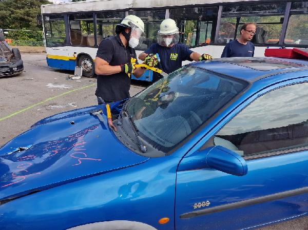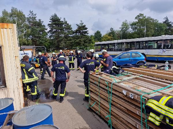 Während die Führungskräfte in Einsatztaktik geschult und mit den Gefahren alternativer Antriebsarten vertraut wurden, ging Löschbezirksführer Thomas Bastuck mit der restlichen Mannschaft die Grundlagen bei Fahrzeugunfällen durch. Danach wurde die Theorie in der Praxis angewandt. Hierfür standen 2 Fahrzeuge zur Verfügung, wovon eines auf dem Dach lag. Ziel war es Zugang zum Patienten zu schaffen, einen so genannten „Inneren Retter“ ins Fahrzeug zu bekommen und das Fahrzeug mit den vorhandenen Mitteln zu stabilisieren.