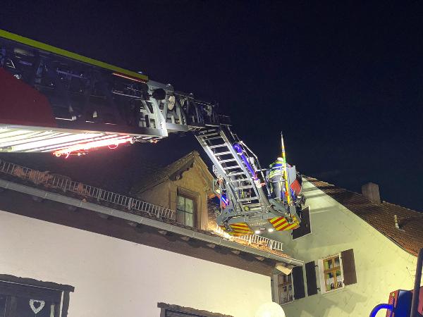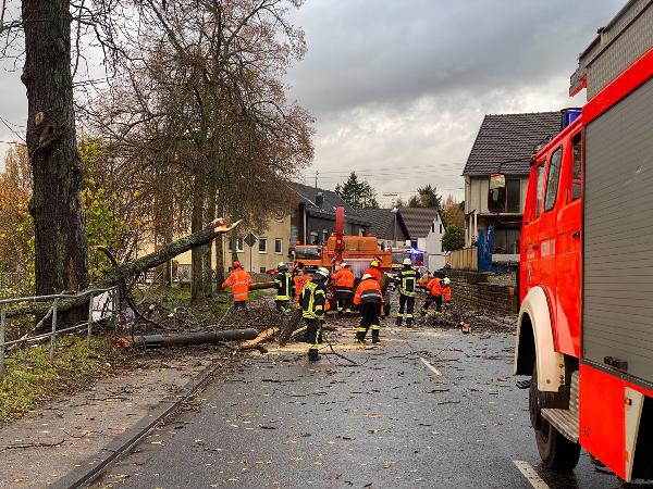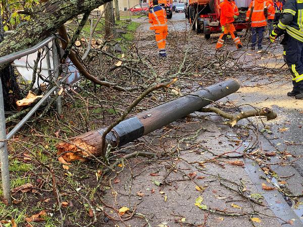 Ein Baum, der auf ein Wohnhaus zu stürzen drohte, konnte zusammen mit den Kameraden der Feuerwehr Illingen, die mit der Drehleiter vor Ort waren, beseitigt werden.