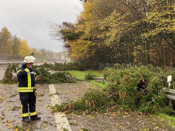 Auch auf der Autobahn A1 waren zwischen den Anschlussstellen Eppelborn und Illingen zahlreiche Bäume umgestürzt und blockierten eine der beiden Fahrspuren in Richtung Saarbrücken. Auffällig dabei war, dass die Schäden alle auf einer Linie lagen und eine Schneise von rund 100 Metern Breite bildeten.