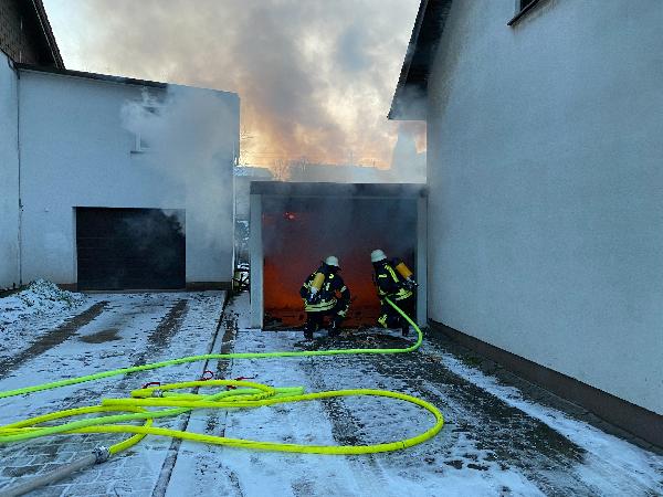 Eine Garage zwischen zwei Wohnhäusern brannte im Inneren vollständig.