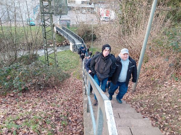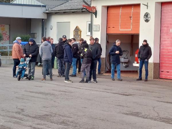Auf dem Programm stand eine Wanderung nach Berschweiler, wo eine Rast in "Bruche Wertschaft" auf dem Plan stand. Start war um 15:45 Uhr am Gerätehaus in der Böllingerstraße. Die Wanderung ging dann hinauf zur Borrwieshalle, über die Urexweilerstraße, vorbei am Frankenbacher Hof, bis nach etwa einer Stunde das Ziel erreicht wurde. Ein Dartspiel entpuppte sich als Magnet für die jüngeren Feuerwehrleute, die dann in einem Wettkampf die Löschbezirksführung heraus forderten. Derweil gab es überall an Theke und Tischen gute Gespräche und eine gute Stimmung.