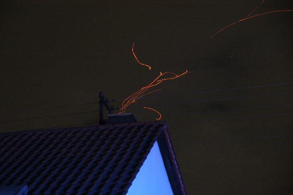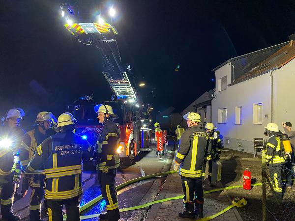 Bei Ankunft der Einsatzkräfte konnte ein starker Funkenflug aus dem Schornstein festgestellt werden. Die Bewohner hatten bereits das Haus verlassen. Bei der Erkundung konnte festgestellt werden, dass im oberen Bereich des Schornsteins, an dem ein Holzkamin angeschlossen war, Ablagerungen im Kamin brannten.