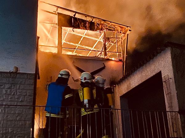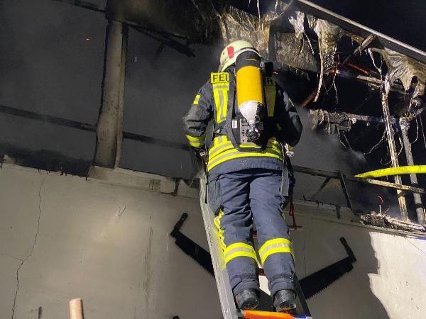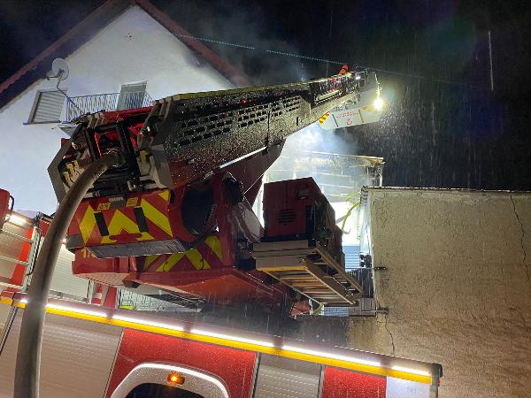 Über die Drehleiter der Feuerwehr Lebach wurde das Dach an mehreren Stellen aufgedeckt, um sicherzustellen, dass sich das Feuer nicht auf den Dachstuhl ausgedehnt hat. Bis auf kleinere Glutnester konnte hier aber kein Schaden festgestellt werden.
