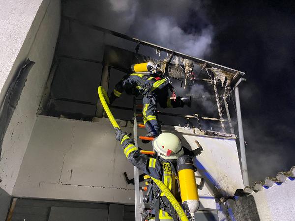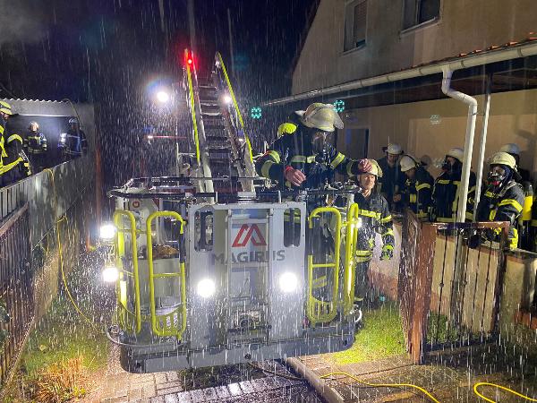 Beim Eintreffen der Einsatzkräfte stand die Überdachung bereits im Vollbrand, der Anwohner hatte sich bereits selbst in Sicherheit gebracht. Während von außen sofort mit der Brandbekämpfung begonnen wurde, kontrollierten weitere Trupps unter Atemschutz, ob das Feuer bereits auf das Wohngebäude übergegriffen hat.