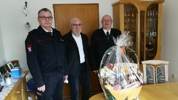 Die Abordnung des Löschbezirk Dirmingen überbrachte im Namen der gesamten Wehr die besten Wünsche und überreichte einen Präsentkorb. Bei einem kleinen Umtrunk mit Imbiss wurden noch viele Themen der heutigen Zeit erörtert und nach knapp zwei Stunden verabschiedeten sich Hans-Werner Guthörl und Rainer Weber.