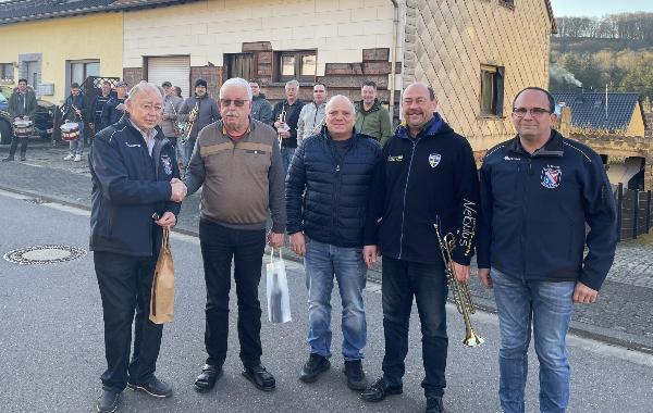Der Fanfarenzug Eppelborn gratulierte mit einem Ständchen, auch der Löschbezirksführer und die Alterswehr schlossen sich der Gratulation an. Auch dirigierte das Geburtstagskind in gekonnter Manier ein Lied des Fanfarenzuges