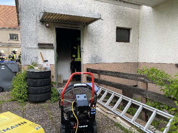 Kurz darauf erschienen die Personen nochmals im Gerätehaus und teilten mit, dass es beim Nachbar in einem Anbau brennen würde. Umgehend wurde die Integrierte Leitstelle auf dem Winterberg über das Vorkommnis informiert und Alarm für den Löschbezirk Wiesbach ausgelöst.