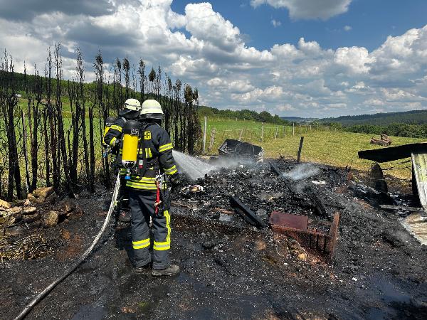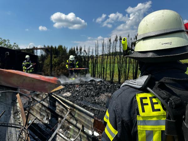 Wegen der abgeschiedenen Lage und der fehlenden Wasserversorgung stellte die Einsatzstelle trotzdem eine Herausforderung dar. Um Löschwasser an den Brandherd zu bekommen, musste ein sogenannter Pendelverkehr mit mehreren Löschfahrzeugen eingerichtet werden.