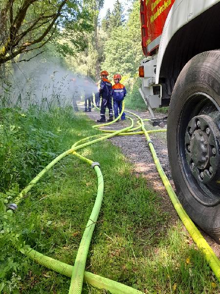 Neben Übungseinsätzen im Rahmen der Brandbekämpfung waren die Jugendlichen am Samstagnachmittag bei einem „Großeinsatz“ an der Kapelle in Macherbach gefordert. Hier wurde zusammen mit den Jugendfeuerwehrkameradinnen -und Kameraden des Löschbezirkes Eppelborn die Brandbekämpfung eines angenommenen Vegetationsbrandes geübt. Hierzu wurde das benötigte „Löschwasser“ aus dem nahegelegenen Weiher gefördert. Natürlich kam die ersehnte Abkühlung in Form einer Wasserschlacht nicht zu kurz. Vor Ort wurden die Jugendlichen mit kühlen Getränken und Leckerem vom Grill verpflegt. Im Anschluss an die „Großübung“ wurde den Jugendlichen das Flachwasserboot im praktischen Einsatz vorgeführt.