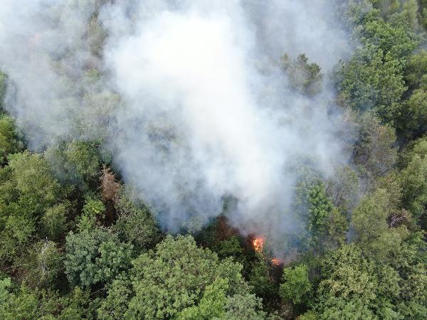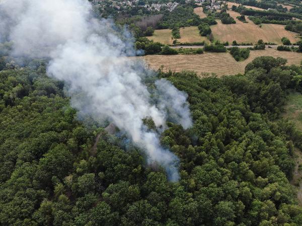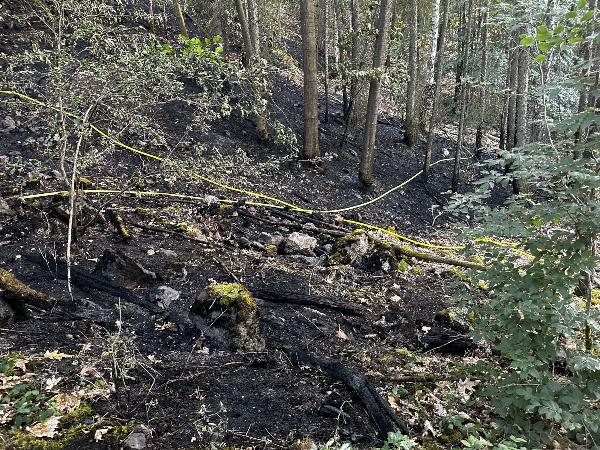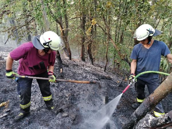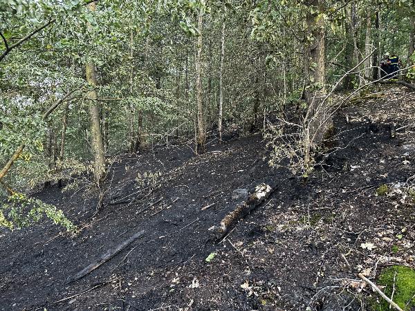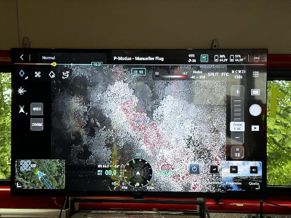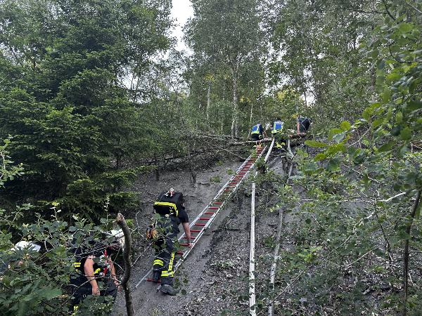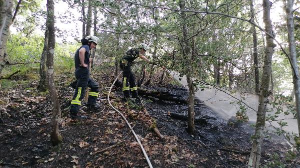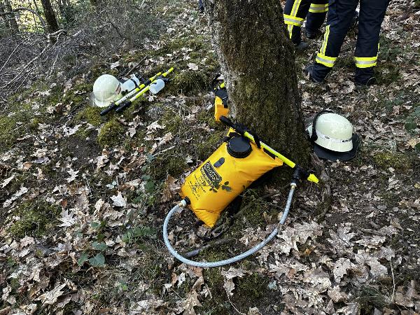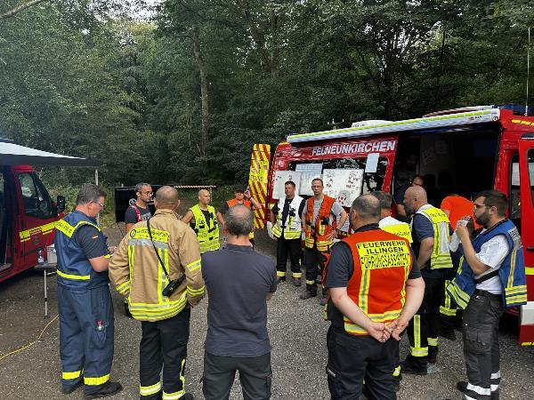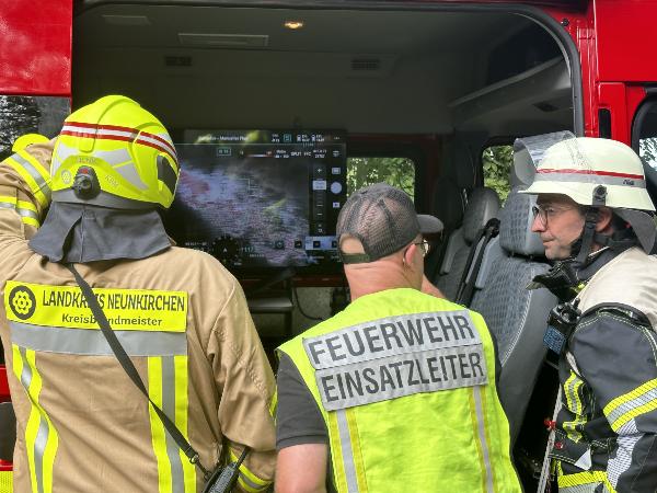 Beim Eintreffen mussten sich die Einsatzkräfte im unwegsamen Gelände der Halde zuerst einen geeigneten Zugang zum Brandherd verschaffen. Mit Motorkettensägen wurden Holzpoller entfernt, um mit den großen Löschfahrzeugen in das Gebiet einfahren zu können. Am Brandherd angekommen, standen die Einsatzkräfte einem Feuer gegenüber, das bereits rund 500 Quadratmeter Vegetation verzehrt hatte und sich weiter ausbreitete. Da sich die Einsatzstelle in einem abgelegenen Bereich befand und eine hohe Ausbreitungsgefahr in Richtung der nahen Bundesstraße B41 bestand, ließ der Einsatzleiter zügig weitere Einsatzkräfte alarmieren. Neben weiteren Löschbezirken der Neunkircher Wehr wurde auch der dezentral aufgestellte Wasserförderzug des Landkreises Neunkirchen hinzugezogen. Dieser spezielle Zug kann mit seiner Ausstattung Schlauchleitungen über lange Strecken verlegen oder Löschwasser im Pendelverkehr mit Tanklöschfahrzeugen an den Einsatzort bringen. Darüber hinaus wurde die Drohneneinheit der Feuerwehr Illingen angefordert, um sich aus der Luft mit Wärme- und Echtzeitaufnahmen einen besseren Überblick verschaffen zu können.