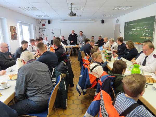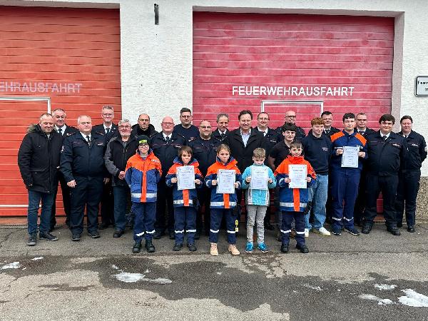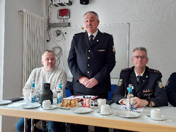 Nach einer Gedenkminute für die verstorbenen Kameraden verlaß der Schriftführer Fabian Schorr das Sitzungsprotokoll der letzten Jahreshauptversammlung. Es folgten die Grußworte der Gäste, die Dank und Anerkennung aussprachen. Blicke in das zurückliegende Jahr und die Ausschau auf das kommende Jahr waren ebenso Themen, wie die Investitionen die getätigt werden müssen, damit die Feuerwehren gut aufgestellt werden können.