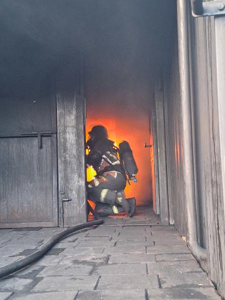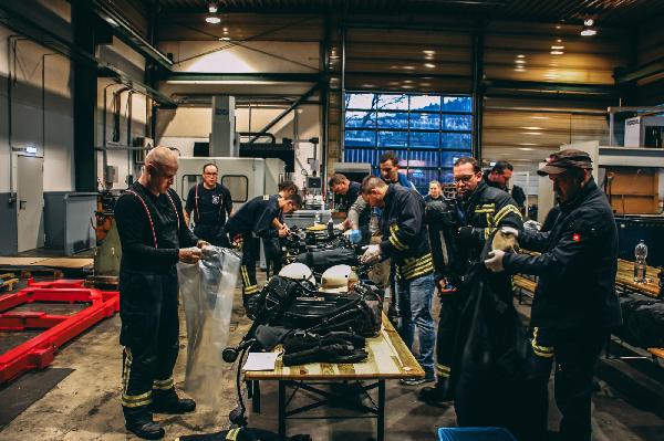 Zudem wurde der Brandcontainer so aufgeheizt, dass man bewusst eine Rauchgasdurchzündung herbeiführte um den Teilnehmern die Schutzwirkung der Feuerwehrbekleidung zu demonstrieren. Die Durchzündung führte zu Temperaturen von bis zu 600 Grad Celsius unter der Decke in dem Raum wo sich die Teilnehmer unter Atemschutz befanden.