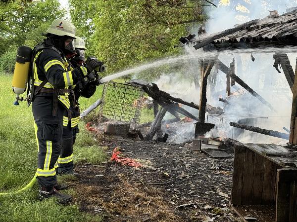 Die Feuerwehr war bis gegen 20:00 Uhr im Einsatz. Die vier Ziegen konnten nur noch tot in den Trümmern aufgefunden werden. Die Polizei hat die Ermittlungen zur Brandursache aufgenommen. Brandstiftung kann zum jetztigen Zeitpunkt nicht ausgeschlossen werden.