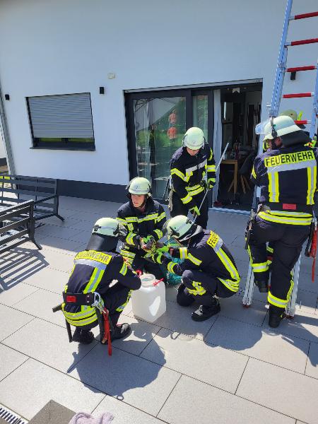 Die Einsatzkräfte aus dem Löschbezirk Bubach-Calmesweiler konnten das erschöpfte Tier von einer Leiter aus mit einem Angelkäscher befreien und in ein Transportbehältnis verbringen.