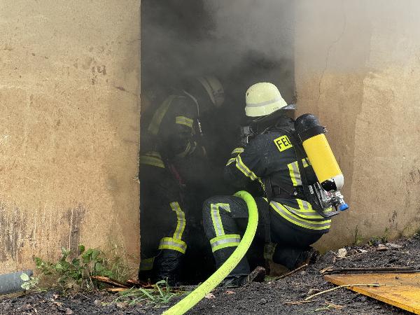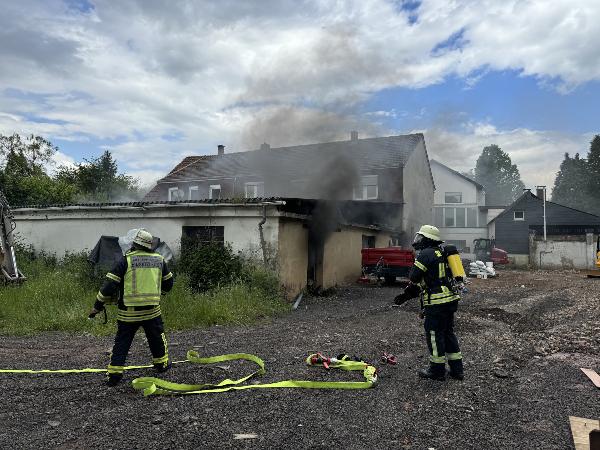 Die Löschbezirke Eppelborn und Bubach-Calmesweiler wurden gegen 15:26 Uhr von der integrierten Leitstelle mit dem Einsatzstichwort "Brand 3" alarmiert. Beim Eintreffen der Einsatzkräfte drang bereits dichter schwarzer Brandrauch aus der rund 100 Quadratmeter großen, eingeschossigen Halle, die als Werkstatt und Lager genutzt wurde.