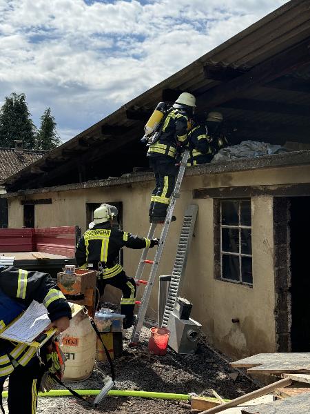Durch den schnellen Einsatz der Feuerwehr konnte ein Übergreifen des Brands auf weitere Gebäudeteile und sich anschließende Wohnhäuser verhindert werden. Es entstand Sachschaden in noch unbekannter Höhe. Die Brandursache ist unklar, verletzt wurde bei dem Einsatz niemand.
