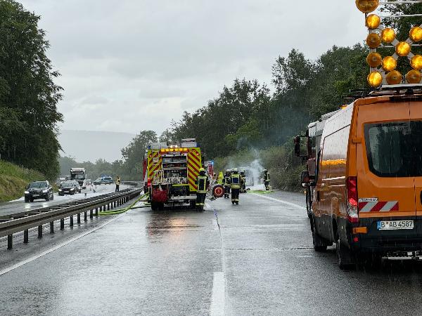 Als er das Fahrzeug auf dem Standstreifen zum Stillstand brachte, schlugen bereits Flammen aus dem Motorraum. Die Mitfahrer konnten sich selbst und ihr mitgeführtes Gepäck in Sicherheit bringen. Als eigene Löschversuche mit einem Feuerlöcher erfolglos blieben, alarmierten sie die Feuerwehr.