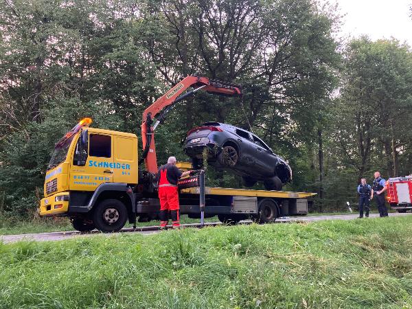 Die Feuerwehr sicherte die Unfallstelle und klemmte die Fahrzeugbatterie ab. In Absprache mit dem Polizeikommando vor Ort informierte die Polizei das Landesamt für Umwelt- und Arbeitsschutz über die mögliche Kontamination des Waldbodens. Der Einsatz war für die Einsatzkräfte aus dem Löschbezirk Wiesbach nach rund anderthalb Stunden beendet.