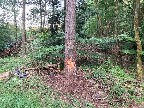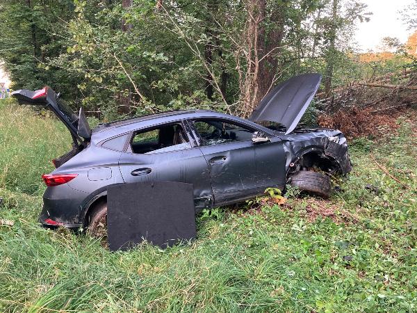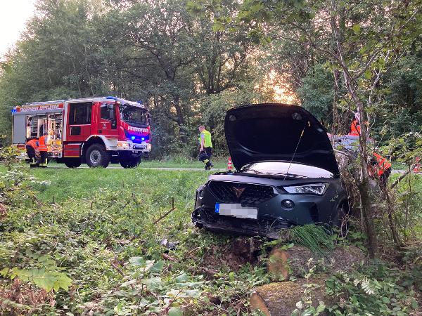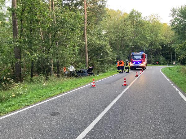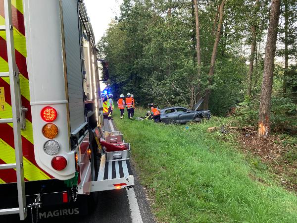 Beim Eintreffen war der verletzte Fahrer schon mit dem Rettungswagen auf dem Weg ins Krankenhaus. Ausgelaufene Betriebsstoffe waren auf der Straße keine vorzufinden und auf dem zugewachsenen Waldboden nicht sichtbar.