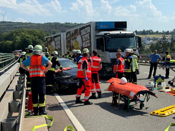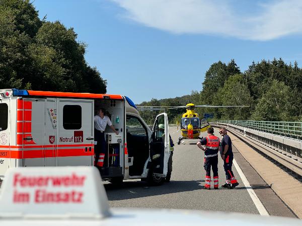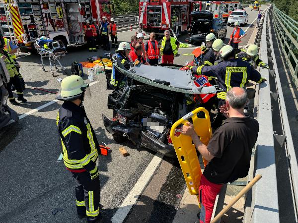 | Eingesetzte Fahrzeuge: | Rettungshubschrauber Christoph 16 (), Rettungswagen (), Polizei (), Autobahnmeisterei (), TLF 16/25 (1-23), LF 8/12 (1-42), RW (1-52), LF KatS (2-44), HLF 10 (2-45), MTW (3-18), TLF 3000 (3-22), HLF 20 (3-46) |