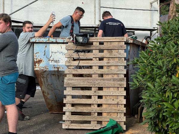 Ein Anwohner war bei Arbeiten aus rund zwei Metern Höhe in einen zum Teil mit Steinen befüllten Container gestürzt und hatte sich dabei Verletzungen zugezogen.