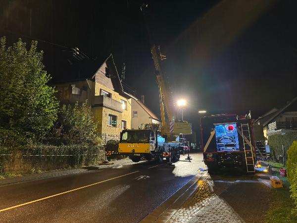 | Eingesetzte Fahrzeuge: | THW Illingen (), THW Neunkirchen (), THW Spiesen-Elversberg (), Energieversorger (), Notarzt (), Rettungswagen (), DLK 23/12 aus Lebach (), Polizei (), Baubetriebshof (), Wasserversorger (), MTW (1-18), TLF 16/25 (1-23), LF 8/12 (1-42), RW (1-52), GW L2 (1-63), MTW (2-18), LF KatS (2-44), HLF 10 (2-45), MTW (3-18), HLF 20 (3-46), ELW (7-11), TSF-W (8-48) |