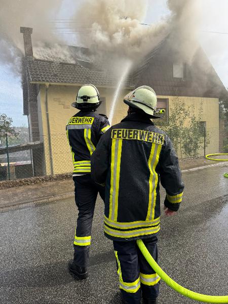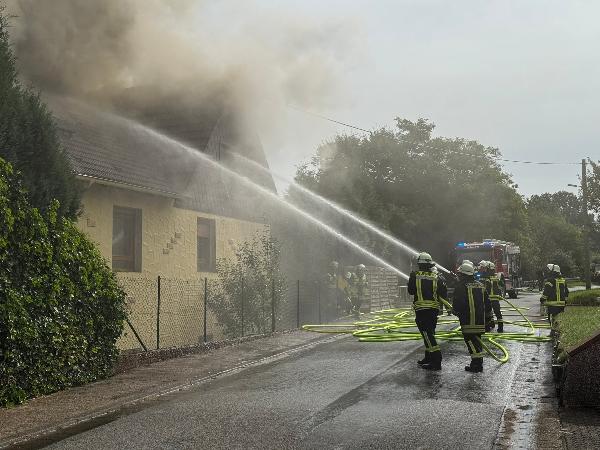 Die Einsatzkräfte machen sich sofort auf die Suche nach Menschen in dem brennenden Zweifamilienhaus. Zum Glück konnte sich der anwesende Bewohner selbständig vor Eintreffen der Rettungskräfte aus dem Gebäude retten und hinter dem Anwesen angetroffen werden. Er wurde vom Rettungsdienst auf Rauchgasvergiftungen untersucht und zur weiteren Behandlung in ein Krankenhaus gebracht. Weitere Personen befanden sich zum Zeitpunkt des Brandausbruches nicht im Gebäude.