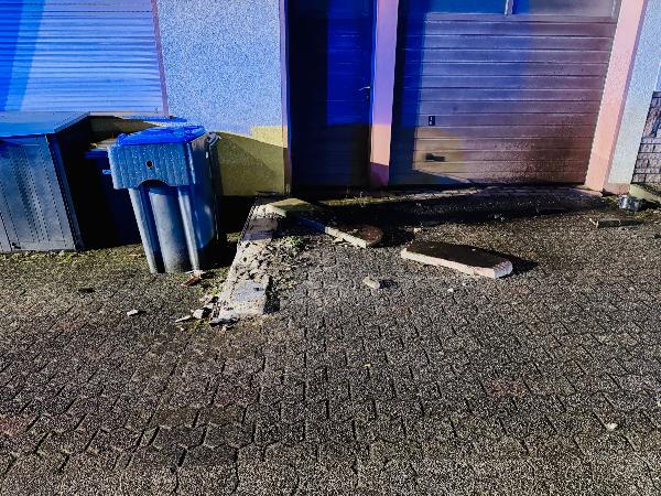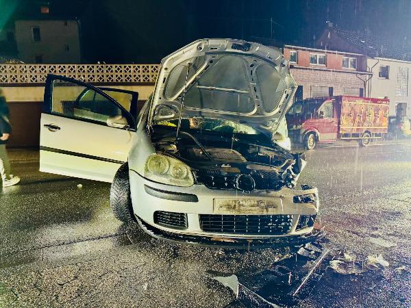 Gegen 22:55 Uhr befuhr ein PKW mit zwei Insassen die Dirminger Straße in Richtung Ortsausgang. Aus bislang ungeklärter Ursache kam der Wagen dabei auf dem gerade verlaufenden Abschnitt nach links von der Fahrbahn ab, kollidierte mit einer kleinen Mauer und beschädigte anschließend mehrere Mülltonnen, die vor einem Wohnhaus abgestellt waren. Durch den Aufprall wurde das Fahrzeug erheblich beschädigt und blieb quer auf der Fahrbahn stehen.