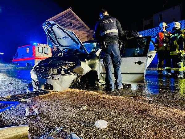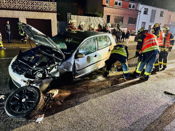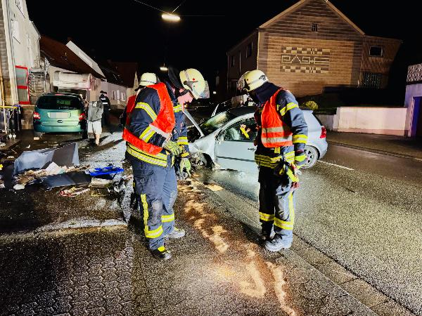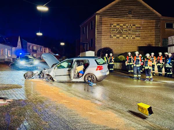 Während der Bergungsmaßnahmen musste die Dirminger Straße bis nach Mitternacht voll gesperrt werden. Am Unfallfahrzeug entstand Totalschaden. Beide Fahrzeuginsassen wurde zur weiteren Abklärung in ein Krankenhaus transportiert.
