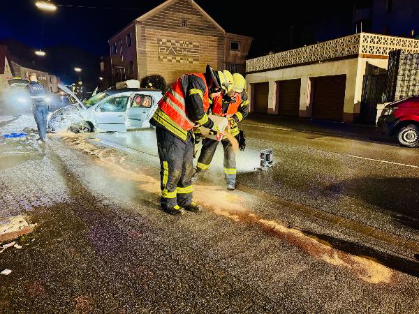 Um die Dirminger Straße schnellstmöglich wieder für den Verkehr freizugeben, räumte die Feuerwehr das Fahrzeug nach der Unfallaufnahme durch die Polizei an den Straßenrand. Auslaufende Betriebsstoffe wurden mit Bindemitteln aufgenommen.