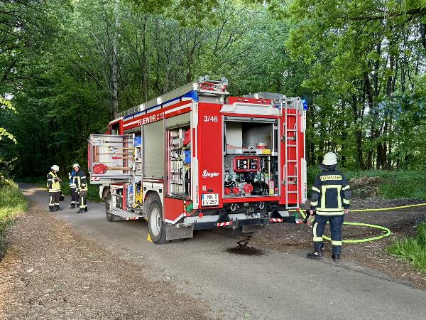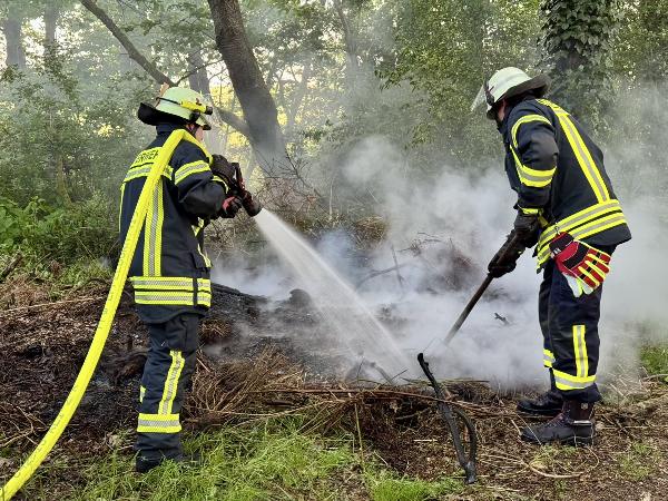Die Einsatzkräfte aus dem Löschbezirk Dirmingen, für die es bereits der zweite Einsatz an diesem Tag war, fanden im Wald einen Haufen trockenen Grünschnitt vor, der aus bisher unbekannter Ursache in Brand geraten war. Mit eine C-Rohr und der Löschwasservorrat aus dem Löschfahrzeug konnte der Brand schnell gelöscht werden. Ein Übergreifen des Feuers auf die umstehenden Bäume konnte verhindert werden.
