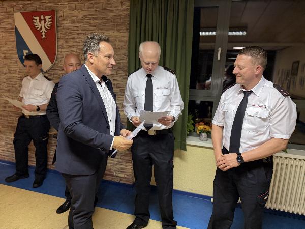 für 35 Jahre Mitgliedschaft wurden die beiden Hauptfeuerwehrmänner Christian Zapp und Maik Hornetz mit dem Feuerwehrehrenzeichen am Bande in Silber geehrt.